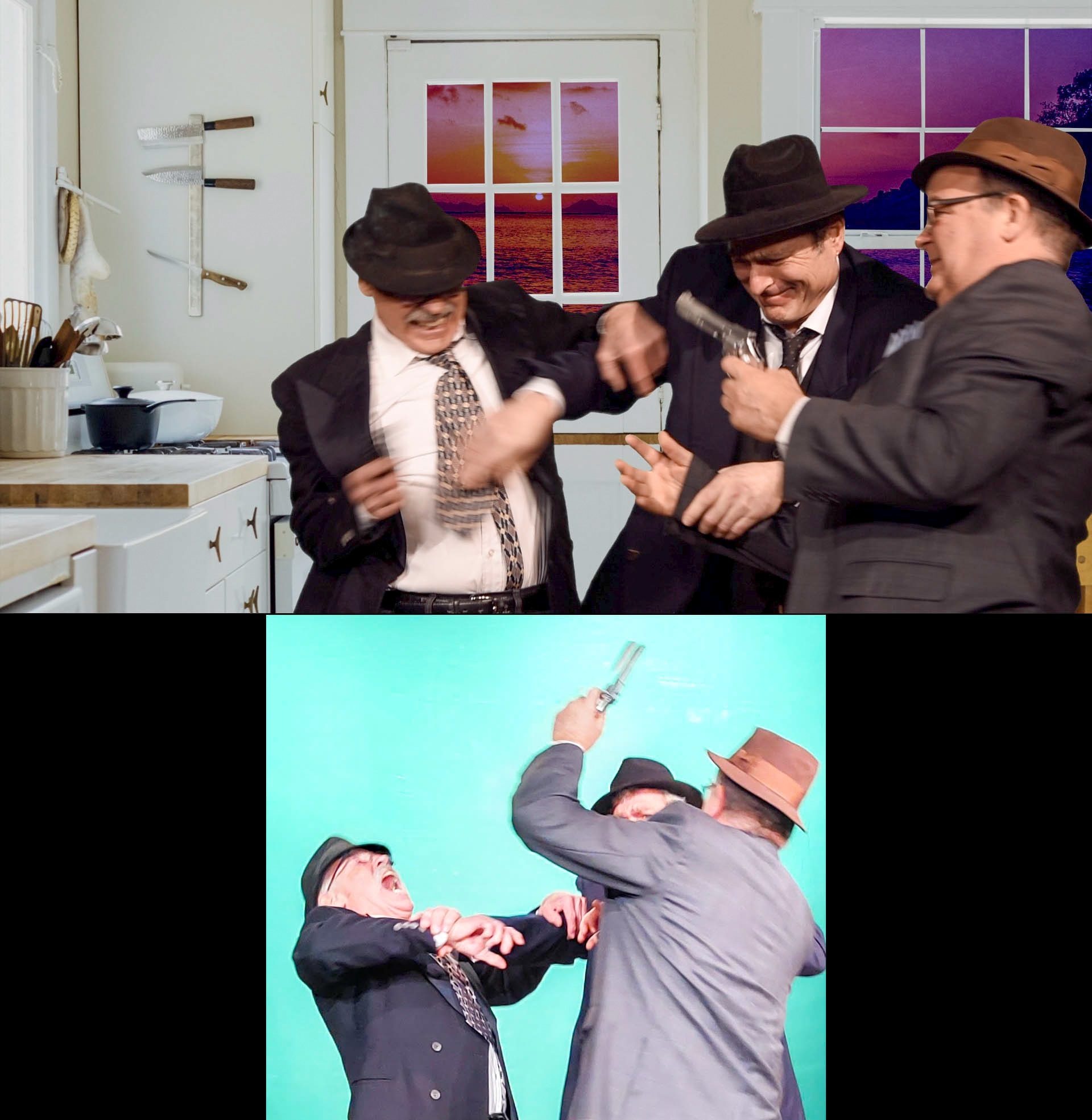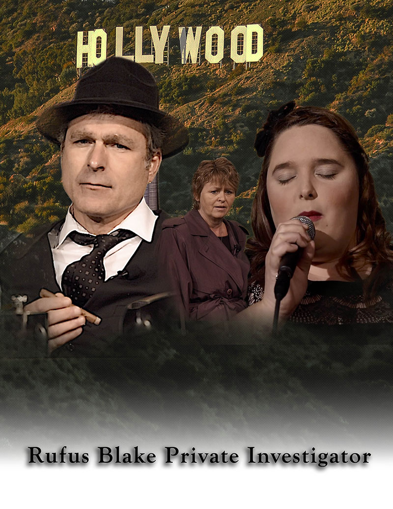 Rufus Blake used the chromo, green screen video recording system. With specialized video editing software, any image or video can be substituted for the green background.