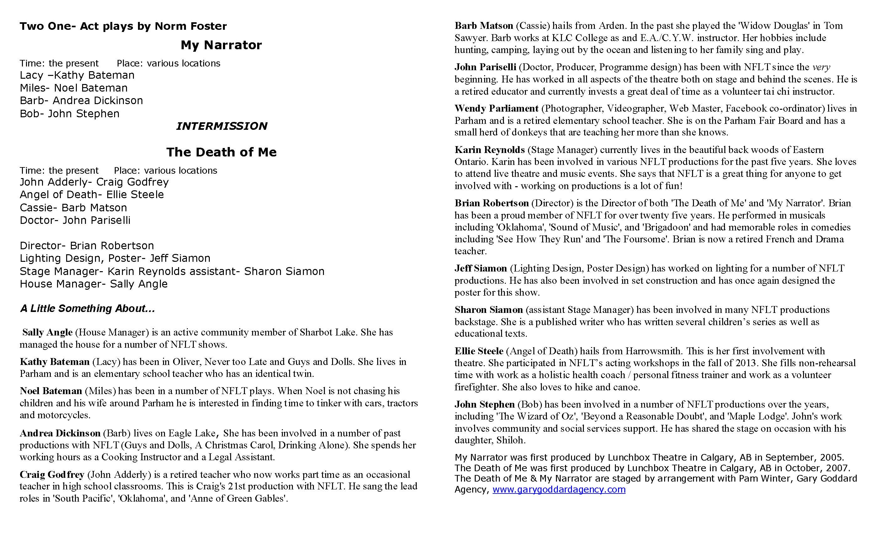 Norm Foster Plays Program